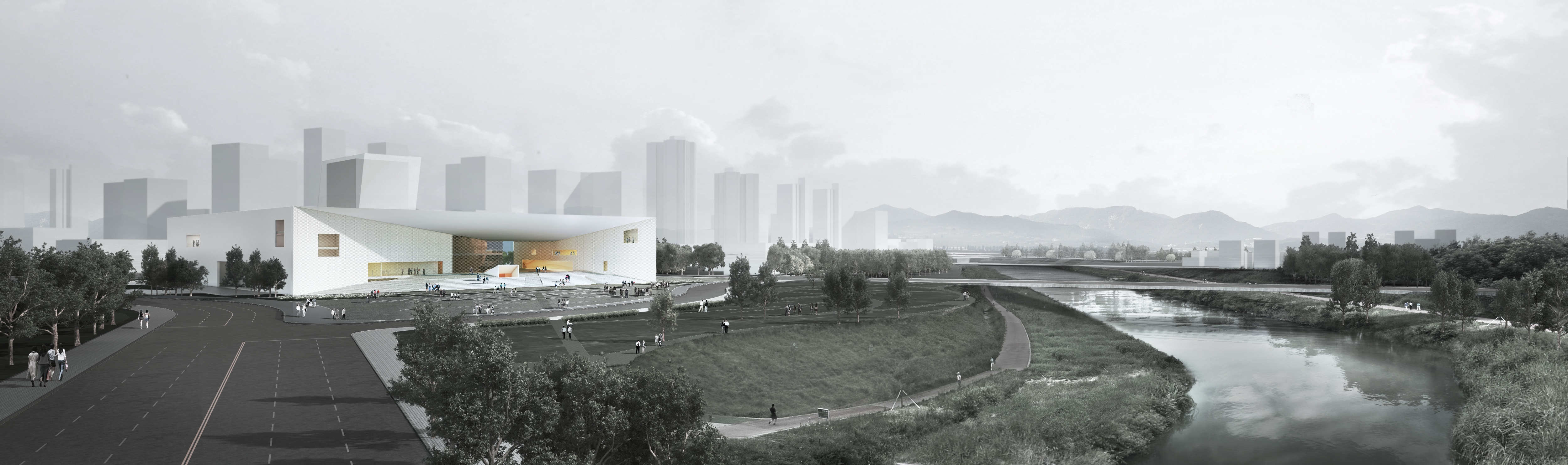 What we propose is a new frame that the urban culture and nature can put together in the frame. This frame is not just a window for scenery, but it is likely to mix and condense daily life of the city, the environment and various cultural devices. It can be a sturdy architectural device for creating innovative artistic fruit.